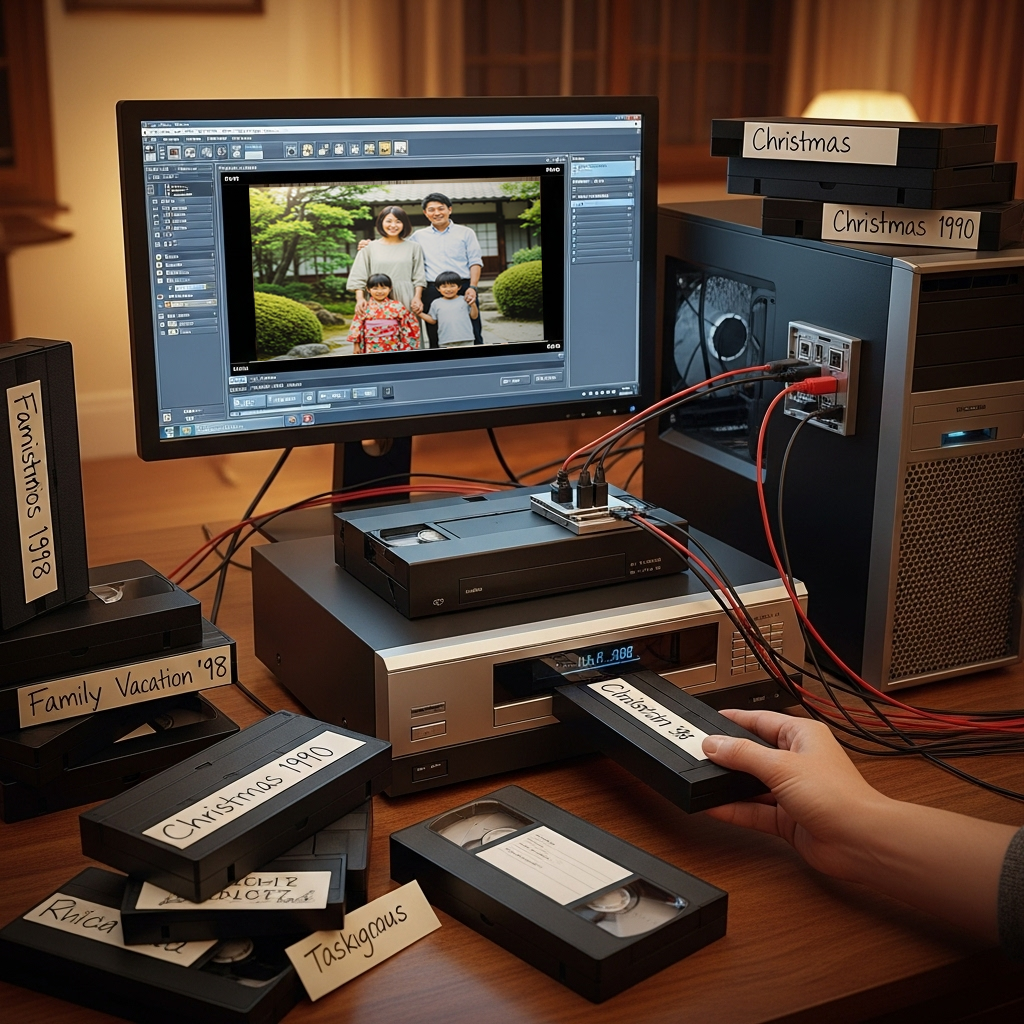昔のVHSテープやビデオテープに保存している映像は、そのまま放置しておくと劣化して見れなくなります。今のうちに動画を抽出してデジタル化して保存しておけば、貴重な財産となります。